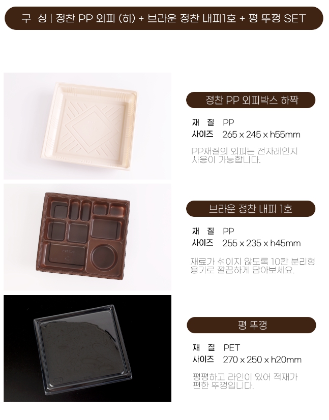 [샘플]브라운 정찬도시락 1호(외피PP,평뚜껑)